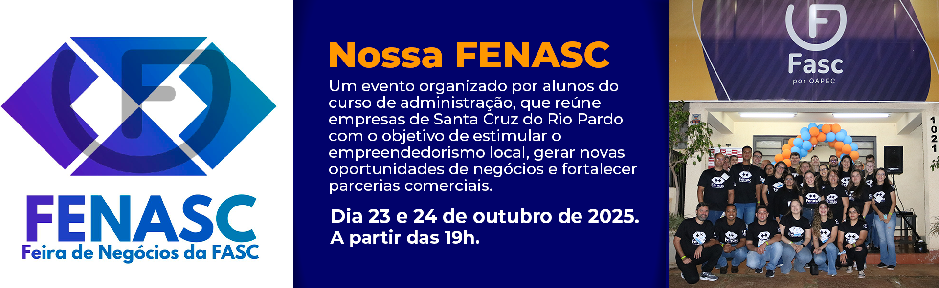 Nos dias 30 e 31 de outubro, acontece a FENASC – Feira de Negócios, onde empresas, empreendedores, alunos e profissionais de diversas áreas estarão reunidos para conectar negócios e gerar grandes oportunidades.